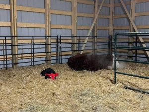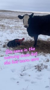 “Calf got stuck under a log and laid in the sleet for who knows how long,, hopefully he’ll get warmed up and we can get him nursing on mom.. raise cows,,, it’s fun!! Thank you Tammy Bird Pursel for helping me out..”